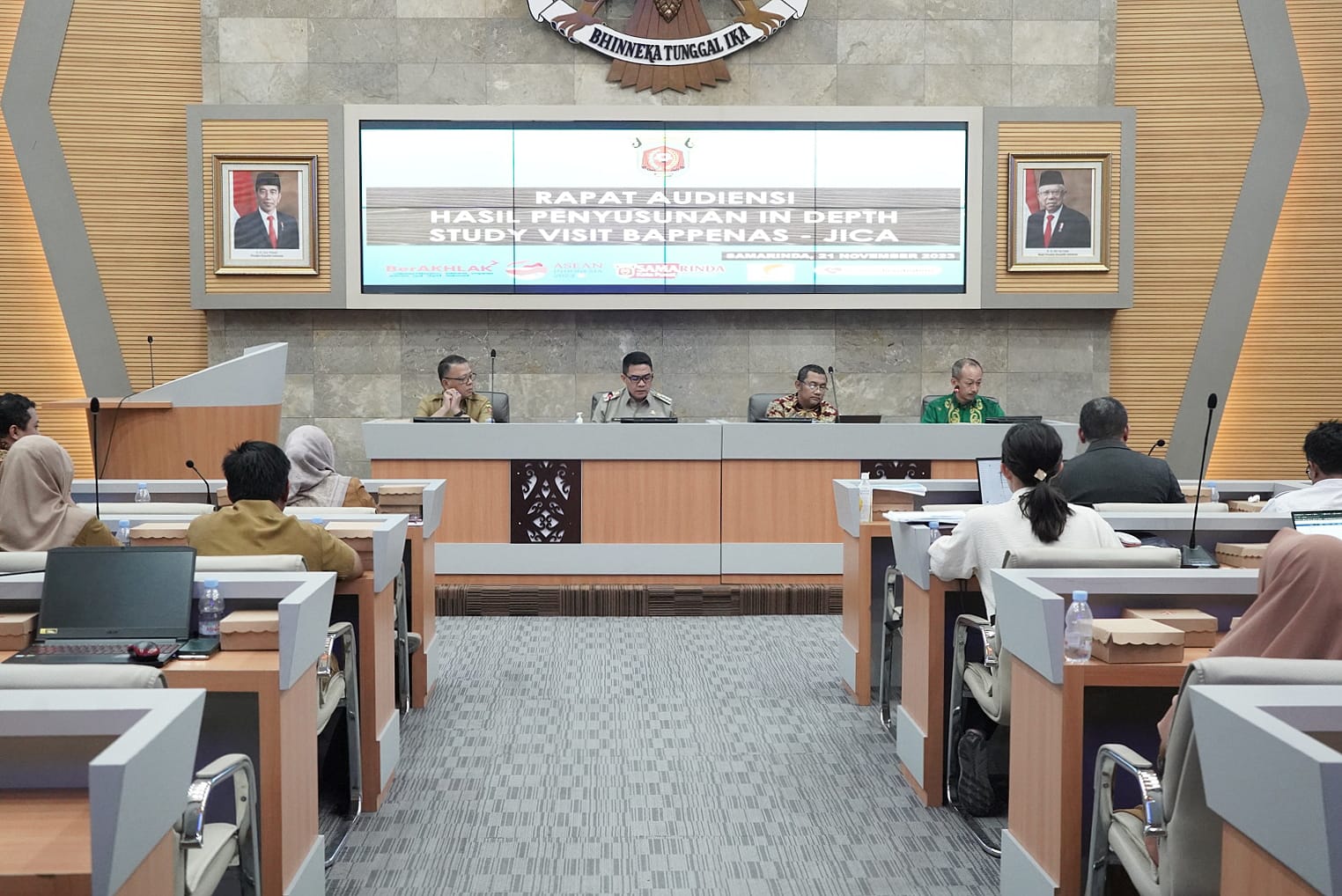 Wali Kota Samarinda, Andi Harun mengadakan rapat audiensi untuk membahas hasil penyusunan In-Depth Study Visit antara BAPPENAS (Badan Perencanaan Pembangunan Nasional) dan JICA (Japan International Cooperation Agency) di ruang Mangkupelas Balai Kota Samarinda pada Selasa (21/11/2023).