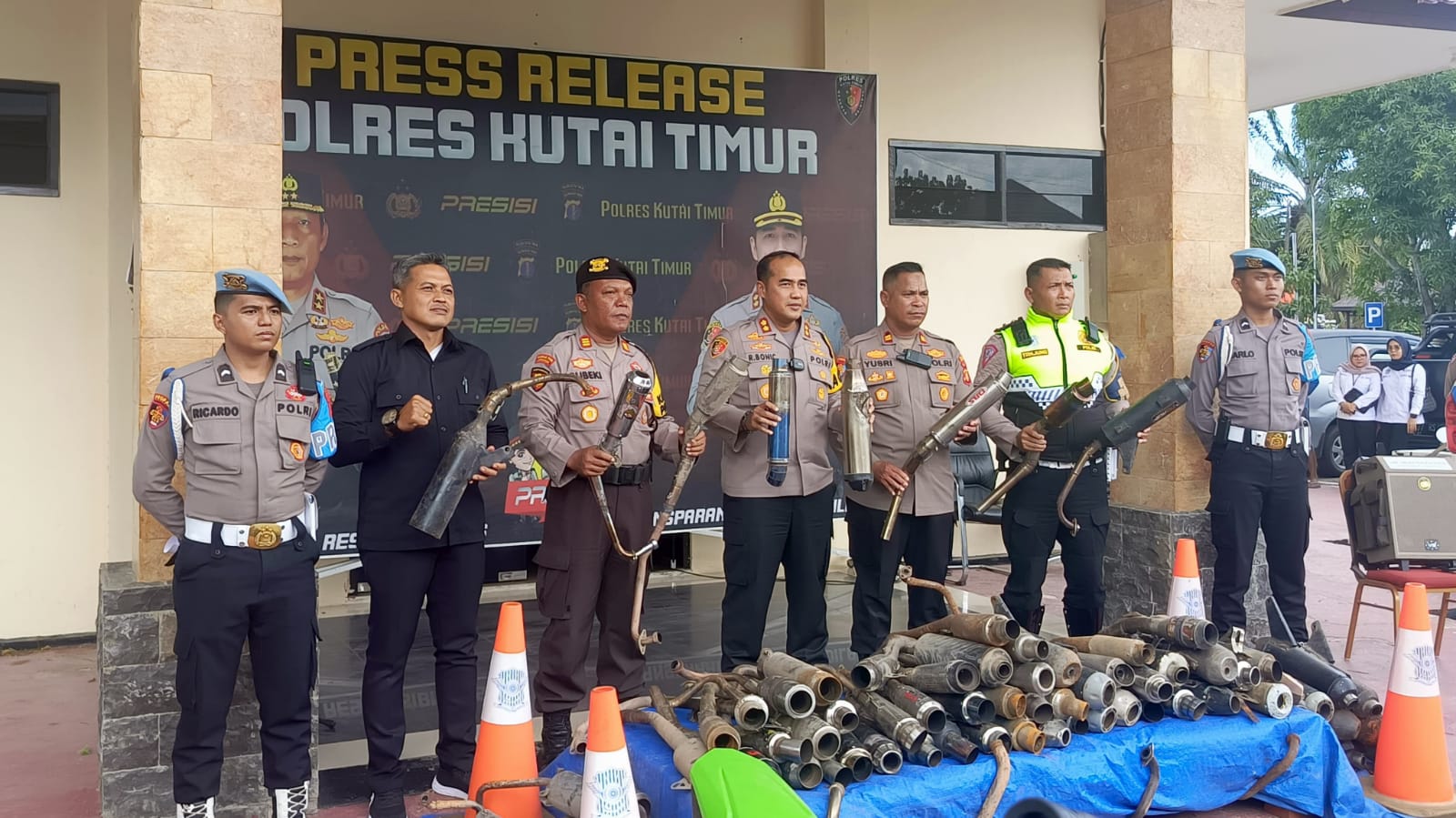 Dalam press confrence di depan Gedung Pelangi Mako Polres Kutim, Senin (3/4/2024) turut disita barang bukti knalpot jenis brong yang bikin sakit telinga karena sudah meresahkan masyarakat sekitar oleh pihak kepolisian.
