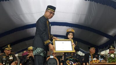 Bupati Kutim Ardiansyah Sulaiman saat menyerahkan penghargaan di momentum Hardiknas 2024